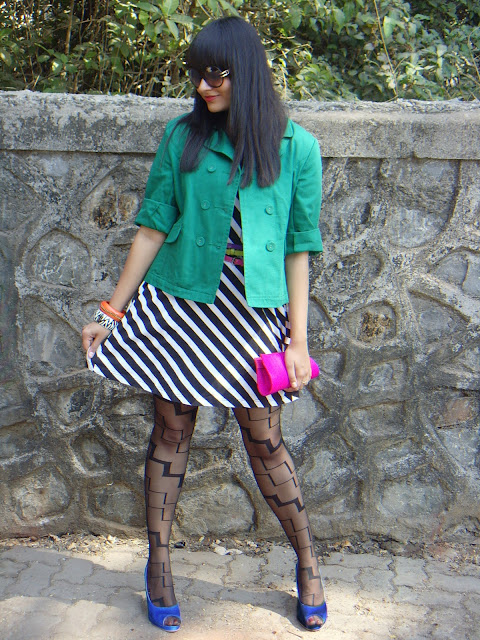 { dress : gift from mom, jacket : old navy, tights : le bijou, shoes : random store, bangles : colaba, clutch : gift from sharmeen, belts : gifts from mom }