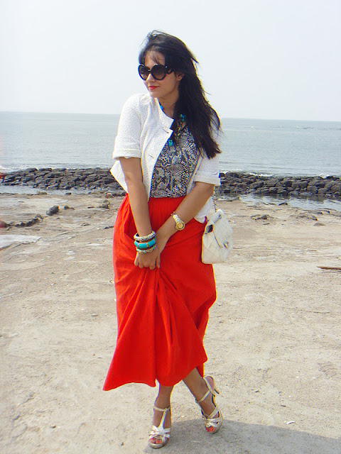 Anushka, you look so pretty! Love the skirt and shoes but most of all that bandhani that's sitting on the beach with your accessories is out of this world! Is that a saari or dupatta?
