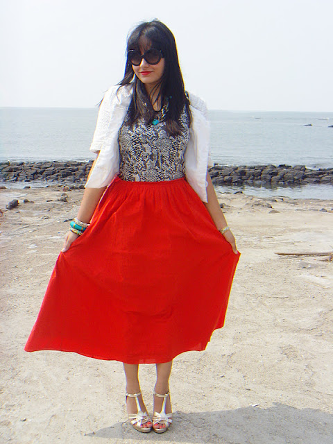 Anushka, you look so pretty! Love the skirt and shoes but most of all that bandhani that's sitting on the beach with your accessories is out of this world! Is that a saari or dupatta?